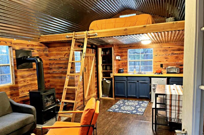 You’ll be just minutes from Saxapahaw, a quirky river town known for live music at the Haw River Ballroom and craft cocktails at The Eddy Pub. Kayak the Haw River if the weather’s mild, or take a winter walk at Saxapahaw Island Park before returning to your cabin for a cozy night in. Book The Dolly on Airbnb.