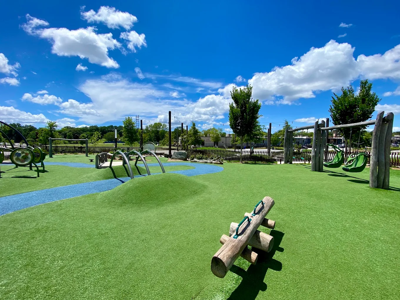 Modeled after New York’s famous Central Park, Legacy Park offers 20 acres of open green space, perfect for older kids to throw a football, fly a kite, or just run around freely. In addition to wide-open lawns, the park features paved walking paths, an enclosed playground with slides, and a spider climbing structure. Families will appreciate the balance between structured play and open spaces for imaginative outdoor activities.
