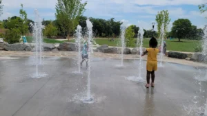 After exploring and running around the playground, cool off in the splash pad at Unity Park.