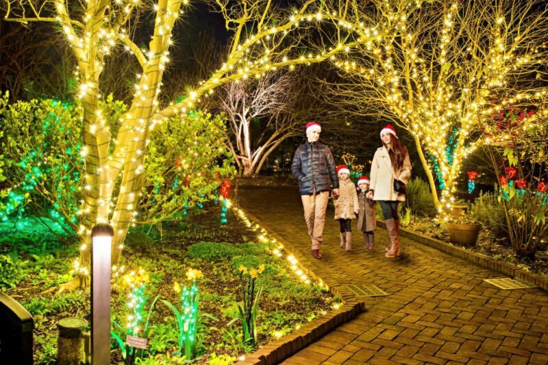 Botanical gardens transform into winter wonderlands during the holidays. Daniel Stowe Botanical Garden, North Carolina Arboretum, Winter Lights at Elizabethan Gardens, Cape Fear Botanical Gardens, and Nights of a Thousand Candles at Brookgreen Gardens all feature elaborate light displays, seasonal decorations, and cozy spots to pause with cocoa or cider. It’s a sweet, slow-paced way to enjoy the season together.